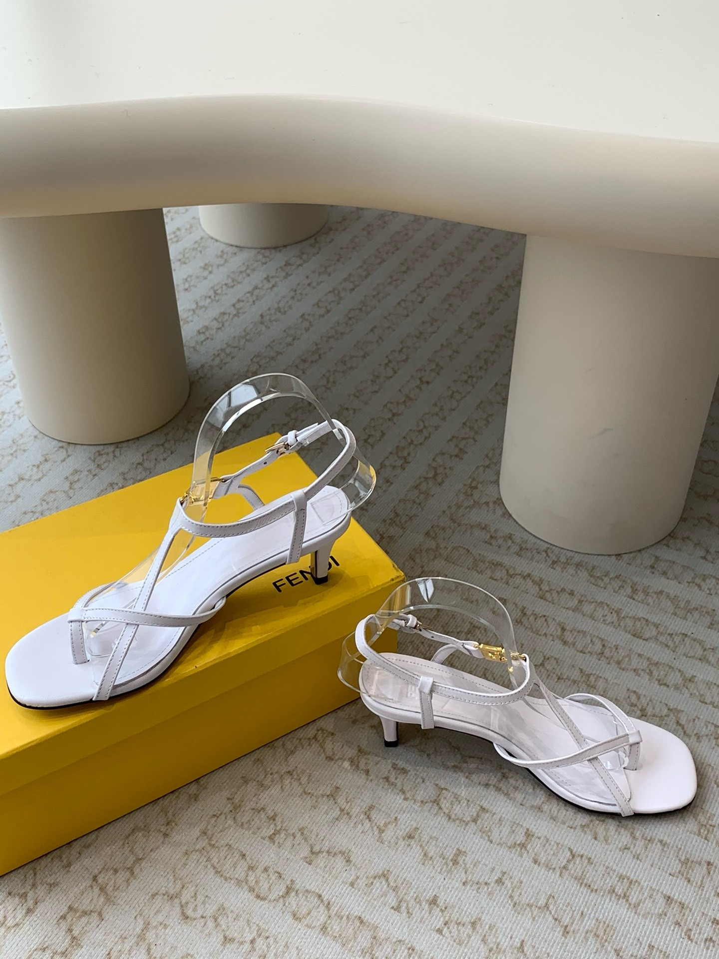 White leather medium-heeled sandals
