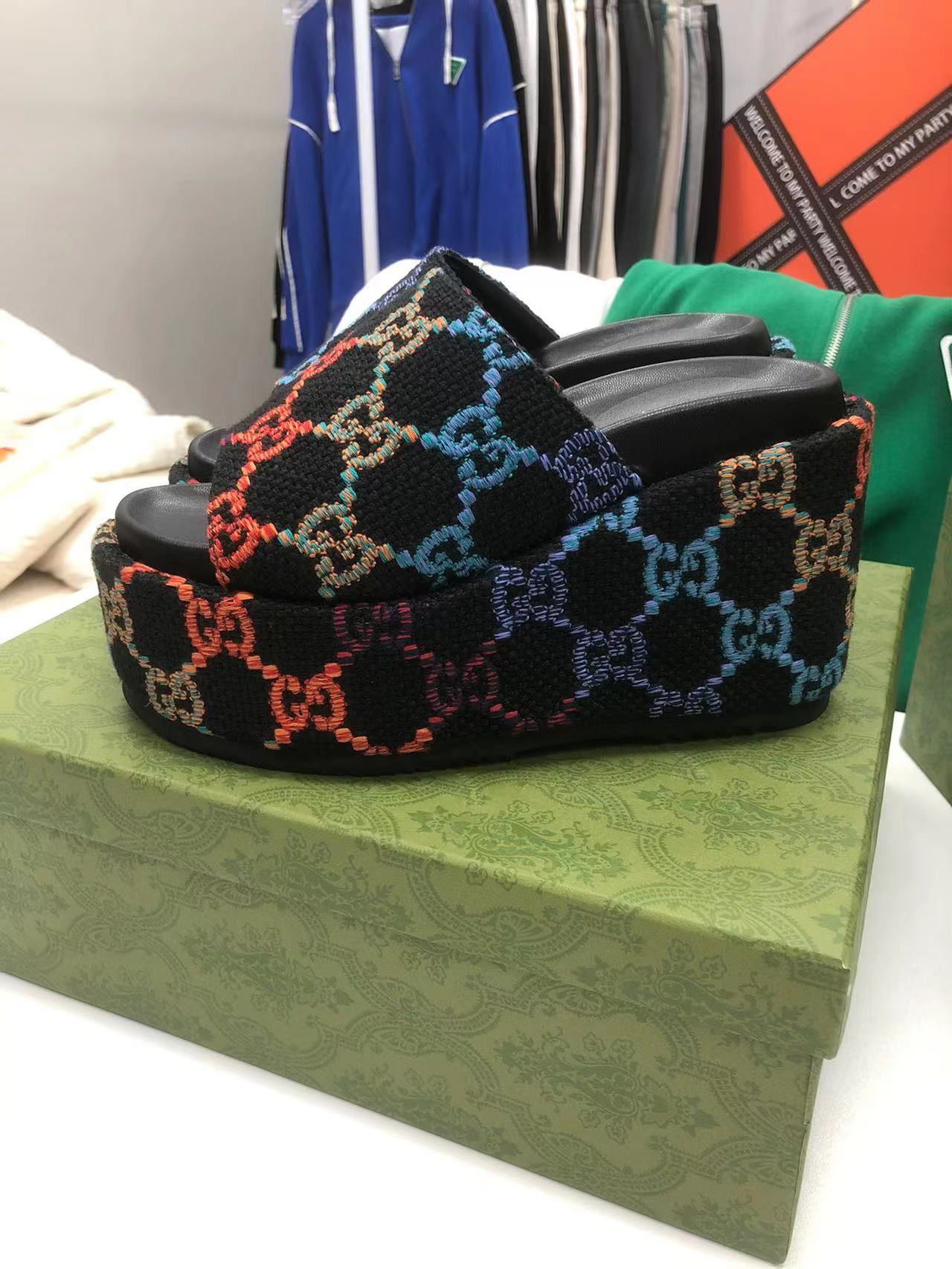 GUCCI platform wedge slippers